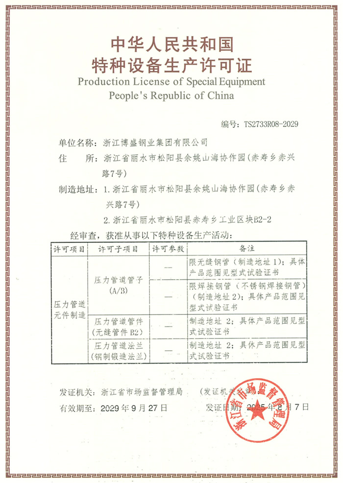 特种设备制造许可证(无缝、焊管、管件三证合一)